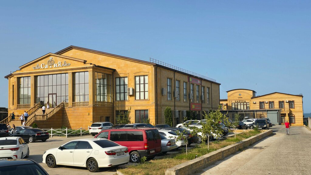 Красивый зал . Много места для парковки . Вкусная еда , и приятная атмосфера в банкетом зале Сафия . Обслуживание на высоте . Если вам нужны свадебные автомобили на прокат обращайтесь к нам . Спокойная езда , всегда чистые авто и вежливые водители .
