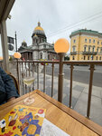 Приятное место, уютное, атмосферное, с веранды открывается шикарный вид на Исаакиевский собор, если нужно столик к определенному времени - лучше бронировать заранее, либо придётся потолкаться в очереди или подождать. Бюджет выше обычного, но еда вкусная, заказала омлет по-французски и латте, официанты шустрые, вежливые, заказ принесли оперативно, было вкусно, размер кружки внушительный😁 диванчики на веранде с овальным столиком уютные, удобные, мне понравилось🤌🏽для спокойного завтрака в Петербурге очень рекомендую🥰