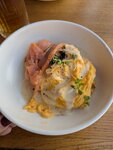 Восхитительно! Один из немногих случаев, когда хочется поставить больше 5 звёзд. Это место было выбрано после минут 50 поиска в Яндекс картах. Отзывы не были прочитаны. После их прочтения стало откровением, что в этот ресторан не так уж просто попасть. Мы просто зашли и сразу же сели за очень приятный и комфортный столик. И это суббота, видимо повезло. Официант Виолетта сразу же взяла нас в приятный оборот и провела по всему меню. Все заказанные блюда были на высоком уровне, единственное, орзо с морепродуктами все же выглядит бедновато по наполнению. Но куриный паштет...просто перебивает любые комментарии. Он шикарен. Сюда можно зайти даже просто ради него. Нежнейший, яркий по вкусу, после его завершения, первая же мысль - заказать ещё. Интересной задумкой выглядит отображение в меню форм бокалов, в которых подаются те или иные коктейли. Причем до мельчайших деталей. Но сами коктейли на 4. Попробовали несколько, не зашло. На помощь пришла проверенная классика - виска сауэр. И надо отдать должное - приготовлен был на 5+ Место оставляет наиприятнейшие эмоции и душевное послевкусие. Максимальная рекомендация.