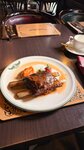 Локация отменная, в двух шагах "Квадрат", выход с ресторана прямо в торговый центр, на минус первом этаже которого продуктовый супермаркет "Глобус". В ресторане красиво, все оформлено с изыском. Обслуживание тоже на уровне. Основные блюда на самом деле вкусно приготовленные. Особенно восхитила котлета из мясного фарша, вот уж точно пальчики оближешь. Стейки вкусные, но берите с хорошей прожаркой, мы это для себя потом поняли. А вот по второстепенным блюдам могу сказать, что не все так радужно, как выглядит на ценниках блюд. Грузди в сметане - пересолили конкретно, либо это разово попали именно мы, либо фишка такая. А вот масолольные огурцы наоборот))). В общем впечатление приятное, малость есть огрехи, в целом не плохо. Отрадно, что все горячие блюда были только что приготовленными и пышали жаром.