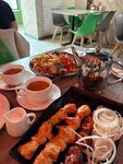 Шашлыки разных видов очень много 1 палка от 1290тг начинаются и уютно, чисто везде, персонал вежливо встречает, работают круглрсуточно, что удобно и возле жд вокзала Алматы 2, и остановка с подземкой сразу рядом, с ребенком и кресло диваечики удобно, ребенку раскраску с карандашами дают, что меня удивило очень и понравилось, правда лепешка как булочка маленькая😅🤭🫣, надо лаваш лучше брать, и кухня разнообразная, за обслуживпние 10% берут, стеклянный, улицу видно, удобно👍👍👍 с Жд вокзала сразу рямо выходите до угла с левой стороны дороги🙂 Приятного аппетита кто придет по отзыву туда!