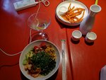 Еда очень вкусная, комфортный зал с диванами. Однако сели напротив открытой кухни и пожалели об этом: крики и ругань персонала слышна клиентам, что, на мой взгляд, недопустимо! Обслуживание на среднем уровне, лучше бы сделали самообслуживание (нам на троих принесли одно меню, которое разваливалось, и в целом пришлось ждать, когда к нам хоть кто-то подойдёт). Остался осадочек. Еду приготовили быстро, зал чистый, вкусно. Место рекомендую.