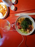 Место прикольное ! Еда вкусная, хоть немного и не соответствует " картинке ". Интерьер хороший , обслуживание в целом быстрое , но мы ходили , когда было мало людей Хочу отметить значительный минус : очень неудобная зона гардероба . Стоит мини столик и один рейл для верхней одежды . Когда мы пришли , он был почти заполнен, хотя , как я уже писала, людей было мало . И сама зона очень маленькая , и на входе и на выходе из кафе, мы столкнулись со столпотворением в этой зоне
