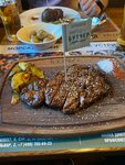 Коротко: отличное место Развернуто: - мачо рибай - один из лучших стейков в моей жизни. Соус не перебивает, а дополняет вкус нежнейшего мяса; - отличная подача. Шеф собственноручно при мне порезал стейк на удобные куски - приятное обслуживание. Для того, чтобы облегчить выбор, официант вынес мясную карту с примерами стейков и подробно про них рассказал. Ответил на все уточняющие вопросы, подсказал, какие стейки подходят для брекетов). Приготовили достаточно быстро UPD через три года: место все еще крутое, стейки вкусные, обслуживание на уровне. Единственное, странно, что воду за 900 р открывают не при гостях. Есть подозрение, что воду просто из под крана наливают в дорогую бутылку
