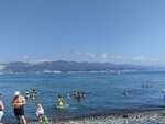 На мой взгляд-лучший пляж на побережье. Удобный заход, достаточно крупная галька, но лучше купаться в тапочках, нет булыжников в море и мусора, как на «Дельфине». Очень красиво. Рядом «Малая земля», место посвященное сражениям в годы ВОВ. Стоишь и представляешь, сколько людей отдали свои жизни за освобождение этой бухты и города, за то, чтобы мы радостно купались и наслаждались морем и солнцем. Стоит посетить, совсем рядом. Инфраструктура развита: мороженое, напитки, еда, кабинки для переодевания, чистый туалет за 40 рублей. Места под навесом и на шезлонгах по стандартному прейскуранту. Можно лежать со своим покрывалом у воды (очень многие так делают), есть деревянные зонтики, под которыми можно лежать бесплатно. Чуть левее, где причал катеров, находится памятник Геше Козлодоеву, как в кадре любимого советского фильма, тоже стоит посетить. Добраться можно просто: или идти по набережной до конца, или доехать на транспорте, или на такси, мы из центра (с ул. Советов) доехали за 190 рублей. Однозначно, рекомендую! Остальные пляжи понравились меньше.