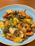 Состав: куриное филе, шампиньоны, вешенки, морковь, болгарский перец, кабачок, шиитаке, репчатый лук, чеснок, гречка, петрушка, домашнее лечо