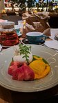 Привлекло меня потрясающее оформление в виде цветов, ну как тут пройти мимо. Ко мне подошла официантка и когда я спросила, что в салате, кроме курицы, она извинилась и сказала, что новенькая и ничего не знает. Через 5 минут ко мне подошла более опытная официантка и рассказала все о блюдах, которые меня интересовали. Я остановилась на салате с моцарелой, креветками и авокадо. (1230 рублей) 🙈Заказ принесли довольно быстро, на тарелочке все порезано кусочками, три креветочки разрезанные вдоль, половинка авокадо, щедрый кусок сыра и листья салата. Неоправданно дорого я бы сказала, а на вкус, как если бы я сделала все тоже самое сама дома) За исключением моцареллы, хочу отметить вкус сыра отменный. 1️⃣Вкус — 4.0 2️⃣Обслуживание — 4.0 3️⃣Атмосфера — 4.0 4️⃣Интерьер — 4.0 5️⃣Цена/качество — 4.0 ✅Средний чек: 2000 руб. ✅Итоговая оценка: 4.0