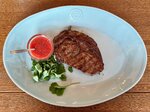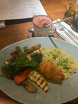 Были в ресторане весной. Место очень приятно удивило и порадовало. Эстетичный интерьер, под который гармонично вписывается легкая музыка. На входе нас встретила девушка хостес, которая проводила нас до , заранее забронированного, столика. Хочется отметить очень вежливое общение с гостями, и униформу персонала. Все очень красивые, ухоженные и доброжелательные. Далее мы заказали пару блюд и ожидание, учитывая почти полную посадку, составило около 10-15 минут. Сами блюда были очень вкусными, а порции большими. Мы заказали стейк из рыбы и картошку с мясом, думая что будет маленькая горка еды на большой тарелке. Но оказалось наоборот. Нам вынесли большую порцию салата, целую рыбу, и сковородку с картошкой и мясом. Еще хочется отметить, что в заведении почти во всех блюдах где должен присутствовать сыр, его очень много, и он сказочно вкусный! Подведя итоги из всего вышесказанного, могу сказать что поставила бы этому заведению не 5, а 10 звезд. Минусов не нашла. Хороший ресторан, в прекрасном городе!