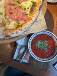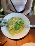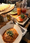 Все было вкусно пробовал телячьи щечки (они просто божественны) девушка со мной пробовала пасту с курицей и грибами (порция удивила нас), обслуживала очень приятная девушка, атмосфера бомба, но было достаточно шумно , из-за большого количества гостей , возможно нужно бронировать заранее в более тихой(ом ) зоне-зале , в общем и целом 5+