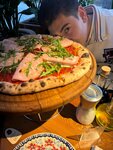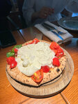 Вкусная пиццуля, кажется со мортаделлой и фисташками. Салат с бурратой очень вкусный. И медовик с фундуком кайф, но жутко сладкий. Сервис всегда кайф, спасибо <3