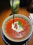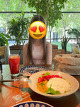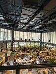 Давно хотели попасть в это заведение, интерьер очень живой каждый уголок в зелени очень современно и при этом по домашнему . Очень популярное место, посадка была полной, нам нашелся столик но было темно попросили хостес поднять шторы пообещала но не сделала. Освободился стол в более приятной зоне Пришли на обед, семья решила что осенью им хочется окрошки взяли на квасе ( в ней муж нашел яичную скорлупу) окрошка стоила 78000 сум, да и такая халатность… позвали официанта и передали привет повару, тут же пришел управляющий и принёс извинения в виде мороженого и десерта. Этот поступок загладил наше недовольство! окрошка на кефире была густовата здесь без претензий просто мы такую не очень любим. Остальные блюда понравились. 4звезды ставлю за небезупречность. Кажется что заведения с высокой стоимостью меню должно быть на высоте во всём