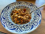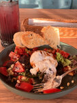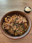 микс салата, говядина, баклажан, перец болгарский, кабачок, кунжут, соус