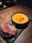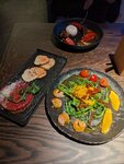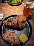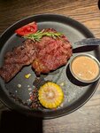 Не первый раз посещаю the бык, но на ВДНХ была в первый раз. Была в будний день, поэтому с бронированием проблем не возникло (бронировала в этот же день днём на вечер). Но если планируете идти в выходные, следует забронировать намного заранее. Можно, конечно, прийти без бронирования и вас пустят за стол в порядке очереди по мере освобождения столов. Но иногда приходится ждать по часу и то не факт, что получится сесть. По персоналу вопросов нет, все сотрудники клиентоориентированы, девушки на входе достаточно любезны со всеми (даже с теми, с кем не хочется быть любезными ну совсем). Официанты подходят быстро, потом время от времени приходят, что бы спросить всё ли устраивает. Приятно удивило то, что официант спросил в каком порядке приносить блюда (потому что обычно выносят по мере готовности). Про еду ничего плохого сказать не могу. Рёбра на высоте, всем рекомендую! Каждое посещение стараемся заказать что-то новенькое, но рёбра всегда неизменны! В этот раз очень зашёл чай с манго и имбирём, это отрыв фляги! На фото: стейк рибай зерновой откорм, ребра свиные в соусе барбекю, тартар говядина, салат с креветками