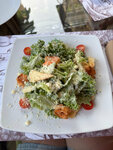 Уютный ресторан. При входе встречает милая девушка, все подскажет и расскажет. Столики под открытым небом и есть немного под навесом. Территория ухоженная, чистая, много зелени и разных цветов. Имеется детская зона для игр. Мебель в отличном состоянии. Туалет чистый, на "5". Теперь по меню. Ценник как и во всех ресторанах, чтобы не попасть в просак, советую ознакомиться при входе, на стойке приставлено меню. Посуда и столовые приборы на "5". Заказ ждали не долго, гостей было мало, не знаю как будет при полной загруженности. Нас сразу предупредили, что через 2 часа нужно освободить наш столик, так как он забронирован. Нам поужинать хватило. Салат от шефа очень вкусный, понравился. Советую. Форель обалденная. Мидии в сливочном соусе приготовлены отлично. В общем ресторан советую, очень уютное место и все вкусно.