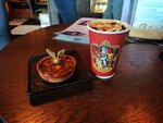 Очень атмосферное место для фанатов Гарри Поттера, начиная интерьером, заканчивая меню. Интерьер приятно рассматривать,взгляд все время находит ранее не замеченные предметы и отсылки. В меню все блюда также отсылают к вселенной Гарри Поттера. Тут можно выпить сливочное пиво, огневиски и даже (совершенно безнаказанно) попробовать кровь единорога. Все напитки безалкогольные. Зельевар при заказе напитка возьмёт на себя роль распределяющей шляпы и с помощью стаканчиков определит вас на факультет. Нашим зельеваром была Вика, все очень понравилось! Всё напитки вкусные, приготовлено быстро. Из недостатков выбор выпечки и десертов показался весьма скромным (были в среду с 11-30). Также в продаже мерч по ГП и пряники с картинками- отличный сувенир друзьям, которые тут не были Кстати, в выручай-комнате (туалет) чисто и интерьер тоже продолжает тематику ГП (что есть не во всех тематических кафе. Некоторые забивают на это и санузел это просто санузел)