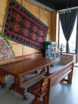 Перовое это понравилось удачное расположение этого кафе с видом на Сулакский каньон. Второе это интерьер этого кафе выполненный в ретро-этно стиле. Когда мы заказали блюда, то нас попросили подождать. Тогда мы решили съездить рядом на смотровую и сказали примерное время к кторому подъедем. Приехав, еда была вся готова и ждать не пришлось Все порции очень вкусные и большие. В курзе (пельмени) мясо было отменным. Никогда таких вкусных не ел. Обязательно закажите здесь какое-нибудь мясное блюдо, т.к. готовят из своего домашнего мяса. Также стоит отметить очень вкусный чай. Туда добавляют чабрец растущий в здешних горах Рядом у входа есть туалет на 2 кабинки.