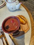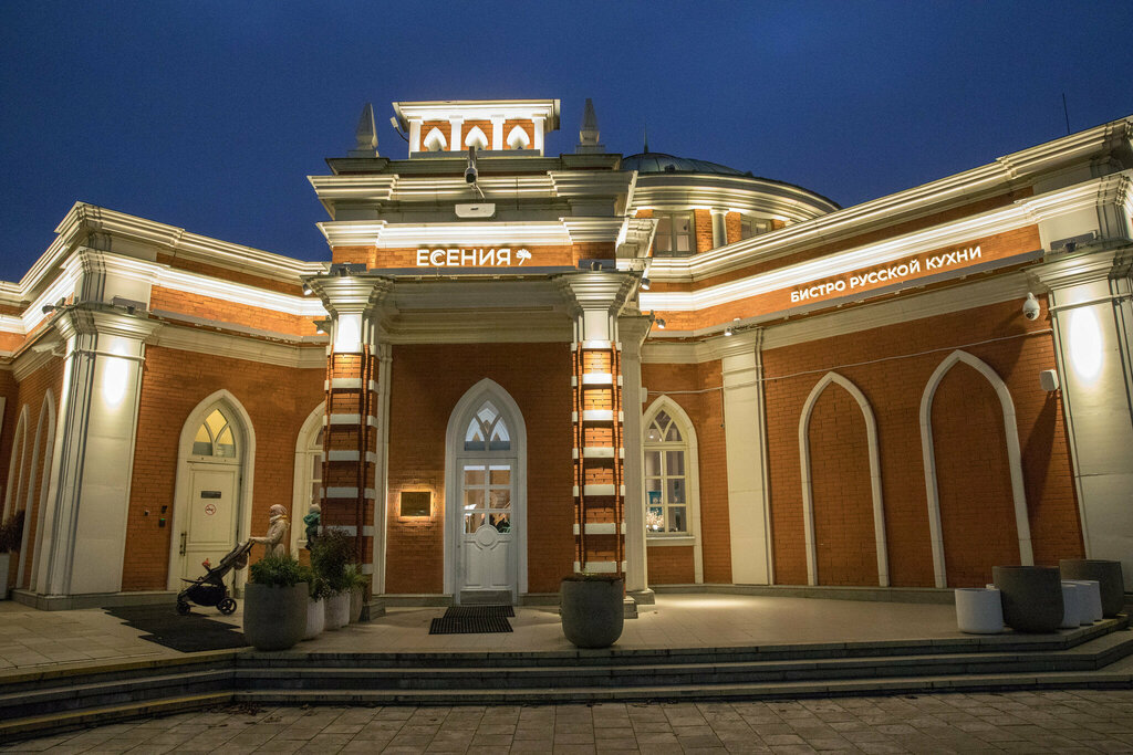 Решила зайти в это кафе посоу прогулки в парке. Пока еще тепло и работает летняя веранда - там очень красивый вид и замечательное флористическое оформление. Внутри ресторана мне понравилось не меньше - очень приятный интерьер, который помогает расслабиться и отдохнуть. Так как я недавно закончила ремонт еще немного напишу о дизайне и оформлении))) замечательно украшены рельефными изображениями растений - выглядит не банально и интересно. В центре помещения расположена большая печь, которую используют для приготовления части блюд. Пока я была там - лепили пирожки и вынимали готовый хлеб. Поэтому пахло очень приятно и свою еду я ожидала с бОльшим трепетом) Я заказывала борщ, чай и десерт. Все подали на красивой посуде ( это была суздальская керамика Дымов). Приятно, что многие элементы очень деликатно подчеркивают русскую тему в ресторане. Это все деликатно: без медведей, балалаек и прочего. Именно так, что хочется приглядываться и рассматривать детали. Еда мне очень понравилась. Меню довольно небольшое, но ясно - каждое блюдо не случайно и все выверено идеально. Борщ был вкусным, наваристым и с большим количеством мяса. К нему подавались небольшие пампушки, сметана и паста из сала, зелени и чеснока. После я съела замечательный наполеон ( очень вкусный крем) и чай с травами (идеально заверен, замечательный баланс черного чая и добавок. Приятно порадовал натуральный вкус всех ароматизирующий добавок - без химии). Так что исключительно приятное впечатление. Хочется вернуться вновь)