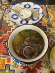 Была в Бухаре первый раз и по приезду сестра сразу повела меня в свой любимый ресторан. Спасибо ей, что открыла мне такое замечательное место. Лучший ресторан в Бухаре из всех, где мне довелось побывать. Гостеприимно, душевно, уютно, красиво и вкусно. Хочется возвращаться снова и снова. В итоге ужинали тут несколько раз. Атмосфера восточной сказки и вкусные блюда. Всё, что мы пробовали - всем понравилось. Не скажу, что цены прям низкие, но в старой Бухаре мы были и в ресторанах подороже. А здесь при средних ценах не добавляют в чек 15% за обслуживание. А еще тут приветливый персонал, красивый интерьер в бухарском стиле, чистые туалетные комнаты и отлично работающий вайфай. Если снова приеду в Бухару, обязательно вернусь в этот ресторан!
