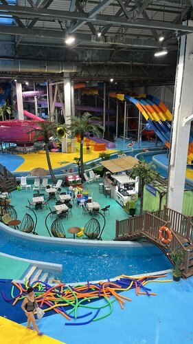 Были с дочкой ростом 130см, разрешили совместное катание на 3 больших горках, нам очень понравилось! В будний день на двоих стоило 2000₽. Народу немного было. Теплый бассейн на улице очень понравился. И река с течением понравилась всем) За 400₽ можно покормить пятками рыбок, это очень щекотно)
