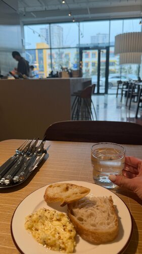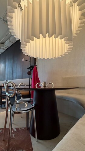 Потихоньку осваиваю гастрономические заведения в ЖК UNO, и дошла очередь до бистро по соседству с DDX. Честно, удивило, что почти никого не было. А место ведь приятное: просторный зал, акцентная большая люстра, необычные стулья — всё выглядит вполне симпатично и с настроением. И хорошо, что до визита я не читала отзывы и статью в БО. Там автора прям очень занесло в сторону «разнести в пух и прах». А я, зная, как вкусно и с любовью делают в Лаванде, шла без особых сомнений, что и здесь будет что-то в этом духе. Меню простое и понятное — буквально по три позиции в каждом разделе: закуски, салаты, первые и вторые блюда. И мне такой формат скорее нравится. Это и про быструю отдачу, и про нераздутый ассортимент, и про отсутствие мучительного выбора у гостя. Что заказала: — батат фри Скажу так: я пробовала его много где, но вкуснее, чем в Горыныче, пока не ела. Здесь, к сожалению, его слегка пережарили во фритюре, и это чувствовалось. — салат с курицей и кумкватом Очень простой по составу, но берет свежестью продуктов. Томаты реально вкусные, а не эти унылые резиновые. Соус интересный: желток, сливочное масло и горчица — вроде почти база для майонеза, но по ощущениям он лёгкий и приятный. — стейк шато Вот он выглядел уже прям как ресторанное блюдо, а не просто «еда при кафе». Подача красивая, особенно удивили сушёные яблоки — интересный акцент. По вкусу тоже вполне достойно. Для кафе такого уровня — очень даже неплохо. По сервису тоже всё приятно: обслуживание вежливое, обратную связь у меня взяли, что всегда плюс. В качестве комплимента дают два ломтика хлеба с маслом. Масло с дижонской горчицей лично меня не особо впечатлило. Зато очень мило, что за мои замечания мне дали с собой круассан с фисташкой — новинку. Вот это уже прям приятно 🫶🏻 Про круассан отдельно: он в форме круга, действительно воздушный, с деликатным хрустом, и внутри его прям щедро набили нежным кремом. Но! Крем был белый, а фисташка шла как наполнение. И вот тут у меня вопросики 😄 Я бы, наверное, назвала такую выпечку как-то иначе, потому что «круассан с фисташкой» в голове рисуется немного по-другому. И совершенно неожиданно меня покорили… мыло и крем в уборной 😁 Вот правда — аромат просто невероятный 💫🤌🏻 Иногда такие детали тоже очень запоминаются и делают впечатление от места. Если честно, глядя на фото меню здесь в Яндексе, не так много позиций хочется попробовать — уж очень всё выглядит просто. Но, возможно, вживую место раскрывается лучше, чем на картинке. И мне кажется, что для аудитории DDX и вообще тех, кто заходит после клуба, было бы очень уместно добавить пару фитнес-позиций с КБЖУ 😁 Вот это точно могло бы зайти. Итог: место у меня не вызвало вау-эффекта, но и точно не заслуживает того хейта, который на него уже вылили. Есть шероховатости, есть что докрутить, но в целом — приятно, аккуратно, местами вкусно и с хорошим отношением к гостю