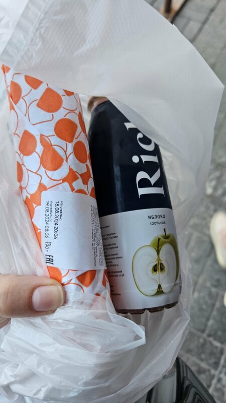 Взяла суп с собой, положили к нему еле живой один кусочек хлеба, даже на 2 не расщедрились, спасибо...