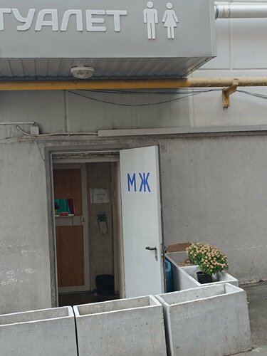 Разруха и антисанитария, везде жуткая грязь, свалены коробки, мусор. Облезлые тумбочки, накрытые старой фанерой, явно с помойки принесли! Коробки с костями и объедками для животных тоже нечто. Я не против бродячих собачек, но если возле кабинки лежит здоровенная псина и не одна, то это как-то напрягает. Есть те, кто боится больших собак, дети. В конце концов, им не место в общественном туалете! Владелец берет плату в 30р. как в благоустроенных, но при этом не считает нормой поддерживать в надлежащем порядке. Администрация города особо удивляет-центр города и такое убежище!!! Или это нормально для столицы Крыма?!