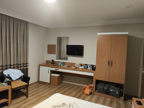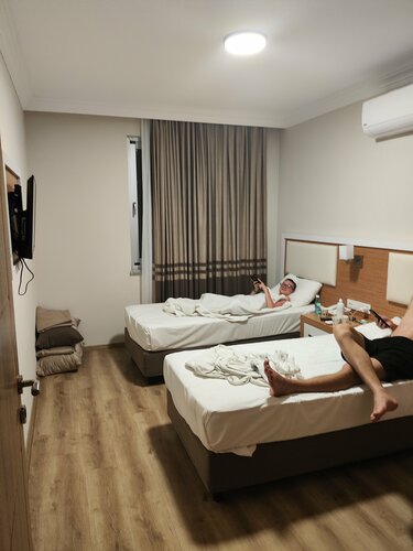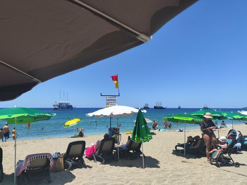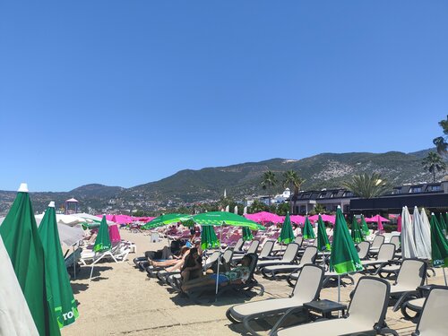 Очень приятно удивлён. Раннее был в Алании, но в другом отеле. Скажу Вам честно - небо и земля. Да, до моря придётся прогуляться метров 200-300 через дорогу, но, отель чистеньким, опрятный, персонал - просто золото. За такую цену - всем рекомендую. Пляж - просто отличный. В отеле - 24/7 вода (минеральная и простая) + кофе+ айран+ соки. Пляж - общественный, поэтому лежаки и зонтики - платные. За 2 лежака - договорились на 500 лир за целый день. Но, можно и немного поторговаться.
