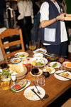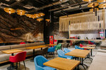 Забронировали столик на пятницу вечер чуть ли не за неделю, по итогу приходим, а никакой брони нет, пока не стали возмущаться, место нам не искали, благо были свободные места на большую компанию и нас посадили. Официанты действительно в мыле, ничего не успевают, бегают как угорелые. Меню на всех не хватает, барное меню вообще на офисной бумаге распечатано, понятное дело, оно уже все износилось. Напитки: апероль прям мимо, даже дольку апельсина не положили. Клубничную Маргариту принесли с ароматом аниса, клубника вообще не ощущалась, попросили переделать в классическое исполнение, клубничным пюре там даже не пахло, скорее слили жидкость из варенья. Еда: салат с хрустящими баклажанами( не ожидайте от него вкусного грузинского) - пресно безвкусно, не хватило кинзы, не хватило соуса, а пару капель творожного сыра на тарелке ситуацию не исправили. Треску подали всю с мелкими костями, пришлось сидеть и все это выковыривать. Предупредила официанта, чтобы тот передал повару. Ожидания не оправдались, есть намного достойнее места с аналогичным чеком.