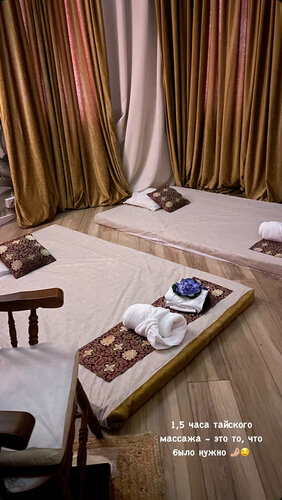 Дважды была на тайском массаже у мастера Нонг , получила огромное удовольствие, вышла обновленная и счастливая 😀 После сеанса администратор предложила два вида вкусных чаев - имбирный и травяной и вкусные полезные угощения ☺️