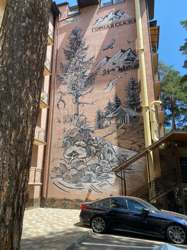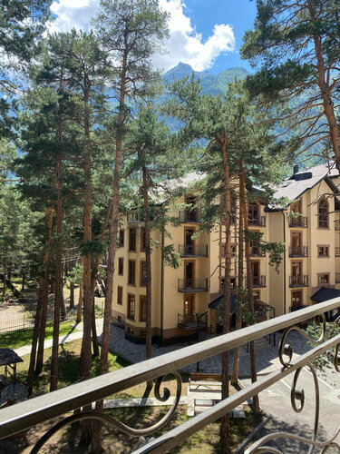Потрясающее место очень атмосферное красивоые сосны,горы до канатки 15минут на машине номера современные хорошие есть небольшая кухня балкончик с шикарным видом точно рекомендую 👍