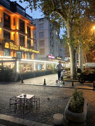 Классный мясной ресторан для местных вдалеке от машин на тихой, очень европейской по обстановке, улице в непосредственной близости от акведука. Рядом расположены мясные лавки, поэтому верится, что мясо в ресторане свежайшее. Приходили сюда дважды. Первый раз немного не угадали с выбором - телятина на пару какая скучная. А вот кебабы, шашлыки (шиш) и котлетки (кофе) тут просто супер. К тому же дают бесплатные овощные закуски (салаты и намазки) и лаваш. Также после трапезы всем гостям предлагается чай в качестве комплемента. Из минусов - отсутствие алкоголя в меню и неуютные внутренние залы (лучше сидеть на веранде). По цене - это было два самых дешёвых ужина в Стамбуле в течение нашей поездки. При том что мясные блюда подаются с гарниром!
