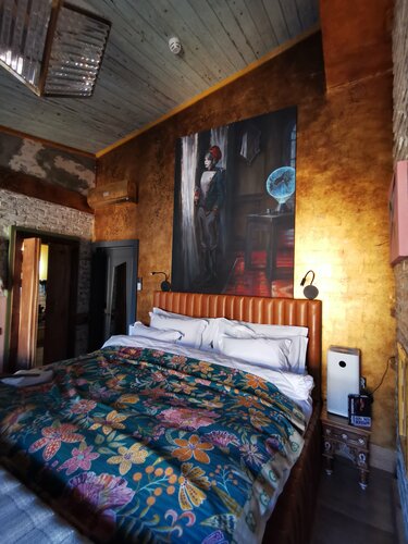 Была 3 ночи, в номере Темная луна. Плюсы: @ вход через красивейший дворик @ шикарный персонал - Богдан, девушка, которая проводила экскурсию, молодой человек, который помогал с вещами при выезде и желал счастливых случайностей) доброжелательные, спокойные, девушка еще с фееричечким макияжем! @ вертикальная галерея - идея и исполнение @ гель для душа и крем для тела - очень нежные @ пушистые полотенца и тапочки @ красивейшая роспись стен в номере @ атмосферные деревянные двери в ванную Минусы: @ не хватает розеток/тройников, так как все розетки, кроме 1 около унитаза, заняты @ нет тюля на окнах, так как взгляд каждый раз упирается в людей в окнах дома напротив, а шторы светонепроницаемые, не хочется постоянно быть с искусственным освещением @ нет порционного молока к кофе и - вина в минибаре @ высокие цены на прачечную, 3600 руб за стирку брюк в течение дня, как-то ту мач, а стирать руками в такой милой раковине жалко (для сравнения, в соседнем отеле 5 звезд эта же услуга стоит 2240) @ горячая вода в кране в раковине - у меня была один раз за 4 дня, вечером @ в дУше очень темно, когда закрываешь шторку @ недостаточное освещение в зоне стола - если работать там на компьютере, нужна лампа @ лично для меня оказалась мрачноватой картина над кроватью, на одну ночь интересно, дальше неуютно В итоге, лично для меня - идеальный вариант для 1 ночи - для вдохновения. Персонал - мечта 💓