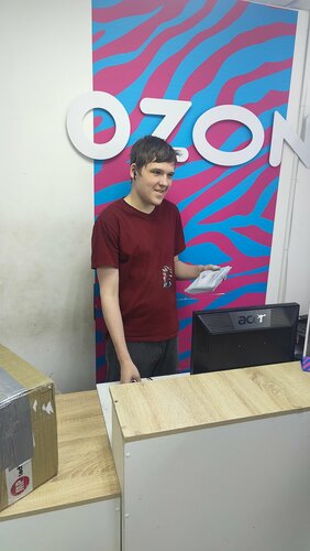 Хороший пункт. Запарковаться можно чуть выше. Подъем по лестнице в озон. Держитесь за поручни в зимнее время. Обслуживает молодой парнишка, весёлый, с чувством юмора. Шустрый малый. Успевает и быстро принести посылку и помочь с упаковкой и поиграть в игрушку.