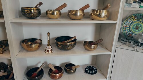 Эзотерическое место. Для любителей просветления. Тут я покупаю свечи и чаши. Тут их большой выбор. Чаши поющие, они настроены на определенную чакру. Слушая эти чаши вы гармонизируете чакры. Если при звучании некой чаши человек испытывает дискомфорт, она может раздражать его - это значит в соответствующая чакра дисбалансирована. В прошлый раз, когда заходил, то обнаружил огромную чашу, которая звучит очень низко. Может пробирать по телу.