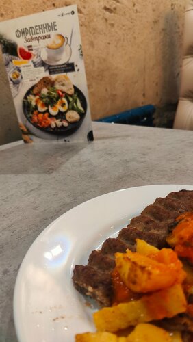 Среднее кафе. Хороший интерьер, диванчики. Очень вежливый парень на раздаче. Еда столовская. Есть можно. Ценник чуть завышен. Большого потока посетителей я не увидел.