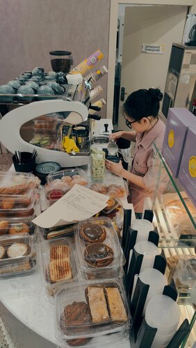 Уютное местечко. Приятная девушка бариста сварила кофе. Музыка не громкая, мягко идёт фоном. Комфортно сидеть в нем, попивая утренний кофе.