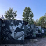 Граффити испорчены вандалами. Сделаны на гаражах.