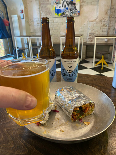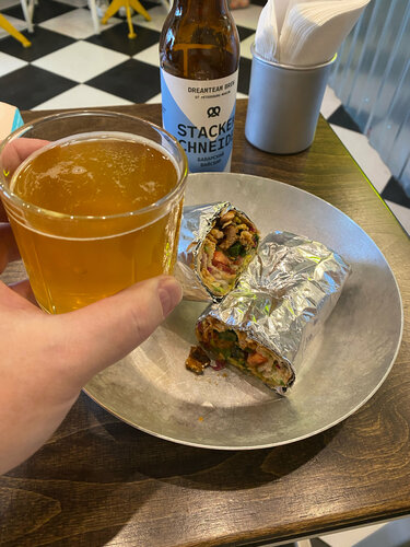 Посетил за лето это заведение два раза и оба раза остался доволен. Пиво нефильтрованное пьется замечательно, кто любит горчинку ярко выраженную то берите светлое фильтрованное. Шаурма вкусная, залетает отлично, готовят быстро. Пока дегустировал, то заметил, что много людей берут еду на вынос. Значит не первый раз в этом заведении и оно им нравится.