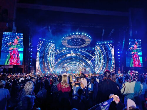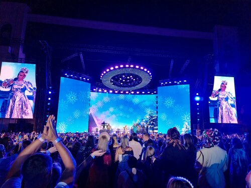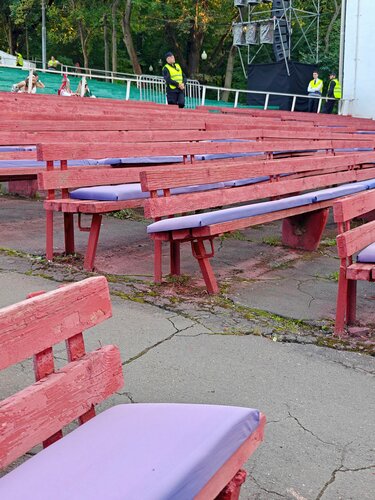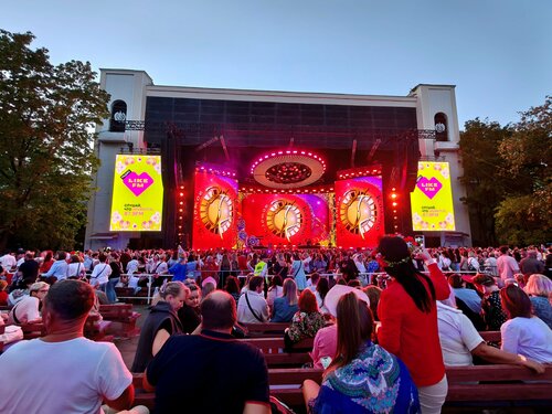 Отличный летний театр в центре города под открытым небом. 8/10 1. Отличный вид на сцену практически с любой точки (за фан сектором, перед сценой - сидячие места, лучше занимать места, начиная с 10го ряда, чтобы никто не загораживал вид). 2. Хорошая акустика, всё прекрасно настроено, звук 10/10. 3. Заходить и выходить было комфортно, если не бежать первым, а подождать 5-10мин. При том, что не было свободных мест, всё было занято, полная посадка. 4. Если вам повезет и будет отличная погода, то впечатлений и эмоций будет намного больше. 5. Рассадка - конусная с уклоном, впереди сидящий или стоящий не загораживает вид. Надеюсь, что в будущем произведут замену сидячих мест, так как деревянные деревянные скамейки уже устали, было бы здорово их обновить. С удовольствием посещу данное место ещё раз, рекомендую.