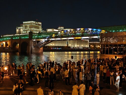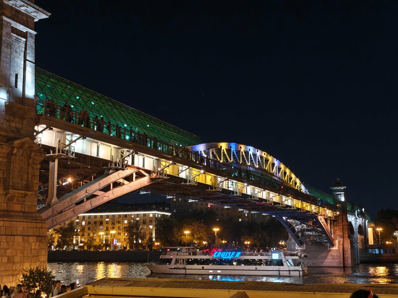 Обязательный для посещения мост в Москве, если вы ещё ни разу на нем не были. 1. Красивый, большой, удобные пешеходные зоны, как внутри моста, так и снаружи, можно прогуляться под открытым небом и насладиться красотой и видами. 2. Расположение 10/10, в центре города, в какую бы сторону вы не вышли, везде вас будут окружать парки, скверы, достопримечательности, церкви и соборы. 3. Советую прогуляться в теплый вечерний день, когда включается подсветка, невероятно красиво. Также при выходе со стороны парка вас будут окружать импровизированные площадки с танцами и музыкой 10/10, атмосфера потрясающая.