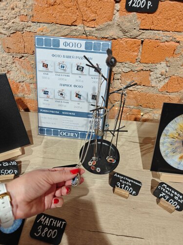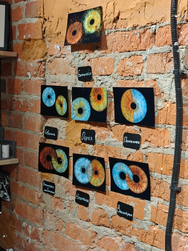 Отличная идея для того, чтобы разнообразить будни. Прекрасное расположение на Арбате, всё рядом, добраться не составит труда, есть видео инструкция от организаторов - как дойти до места. Оригинальная идея, можно сделать различные вариации картин в виде глаз, выглядит красиво. Также есть различные брелки, кулоны, перстни и др. аксессуары. Само действие занимает 5 минут + минут 40 после этого нужно подождать, пока сделают картину, как раз в это время можно пройтись по улице или зайти в любое заведение, благо есть из чего выбрать. Посетить1 раз рекомендую, 9/10