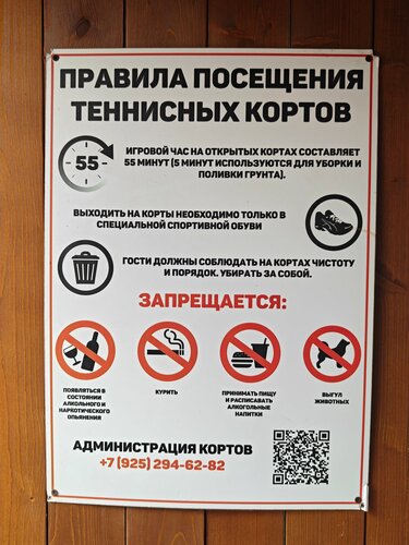 Отличные корты на северо-востоке Москвы, высокие борта, мяч не вылетал, покрытие хорошее, сетка тоже натянута хорошо, линии разметки видно. По телефону оперативно забронировали и сразу оплатили. Перед игрой корт поливают и просеивают волокушей, чтобы не было следов и крупных частиц, мелочь, а приятно. Также есть небольшая раздевалка, где можно переодеться и оставить свои вещи, их также можно оставить на лавочке непосредственно перед кортом. За 2000руб/1ч отличный вариант для новичков и любителей. Так как площадка под открытым небом, то стоит взять очки в солнечную погоду.