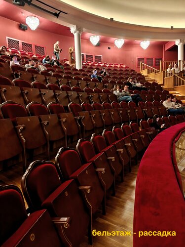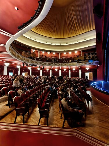 Отличный театр в центре города, небольшой, "камерный", ощущение чего-то домашнего, уютного. Театр после реконструкции, всё новое, свежее, красивое, однозначно приду сюда ещё раз. 1. Расположение 10/10, самый центр, удобно добираться. 2. Сам театр небольшой, относительно других, но это делает его камерным и уютным, сцену видно хорошо. 3. Лучшие места на мой взгляд: 1) Партер - 6 мест слева и справа от центра. Но учитывайте тот момент, что спереди вам могут немного загораживать вид на сцену. (Тогда лучше рассмотреть бельэтаж) 2) Бельэтаж (балкон) - 6 мест слева и справа от центра, тут точно никто спереди не будет мешать, так как очень большой наклон. 4. В фойе есть сувенирный магазин, играет музыка, есть буфет, также можно попасть на мини выступление - представление, которое происходит в антракте в самом фойе. 5. Акустика хорошая, слышно с любых мест, сиденья удобные и широкие. Рекомендую к посещению, с удовольствием вернусь ещё раз.