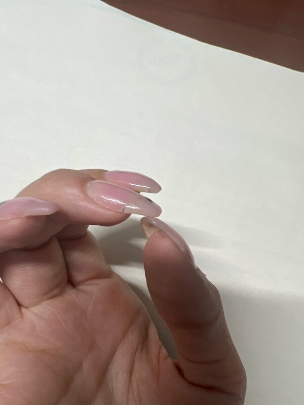 До этого был хороший опыт,теперь негативный. Первые 4 дня было все ок,потом ужас. Под покрытием пустоты. За укрепление деньги взяли,по факту его не было. Не рекомендую. Сделала фото только 1 ногтя,так как все такие.