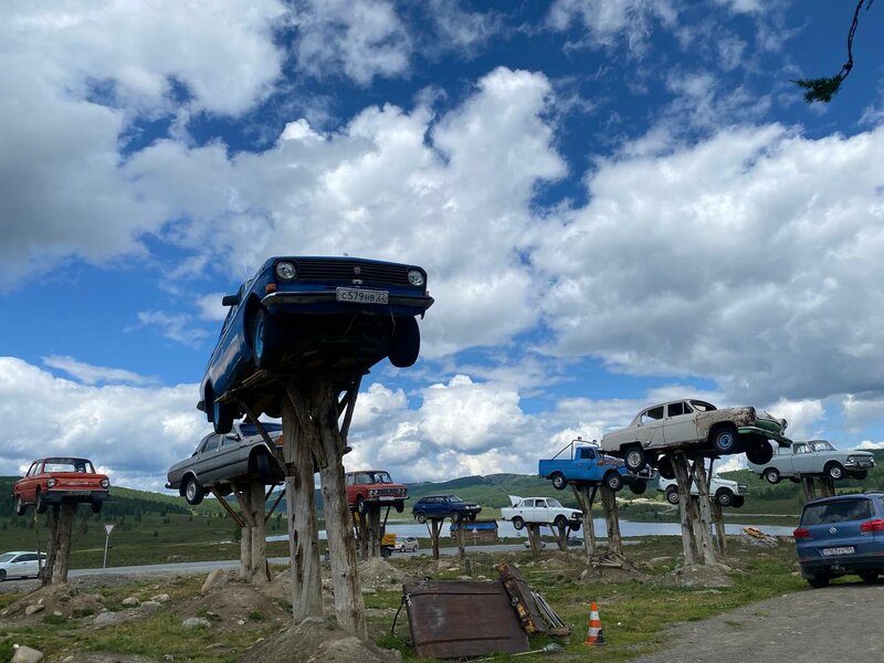 Очень интересное место, рекомендую к посещению. Машины на столбах, раритетные предметы и замечательный хозяин.