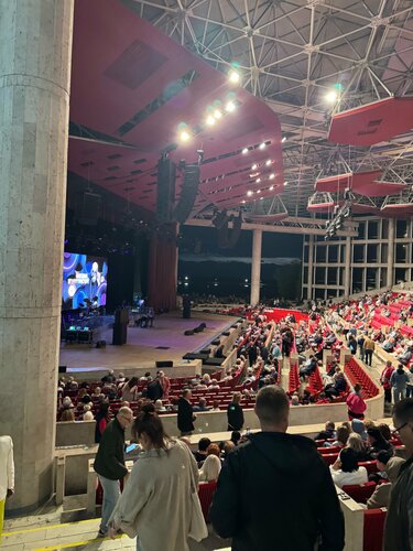 Большой вместительный зал,были на концерте Шуфутинского,хороший звук!Выход и вход в зал удобный.Немного подвела погода,сидели в первом секторе и вечер был с прохладным ветром,само представление не дало нам замерзнуть;)