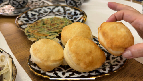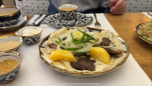 Как же нам было вкусно! Мы не купились на шведский стол, хотя это было бы бюджетнее, заказали бешбармак, шурпу, катламу и чайный казахский сет. Порции большие, съели всё, так как очень вкусно. И необычный чай с пшенкой тоже зашел на отлично! Обслуживание: звоночек на столе и официант в национальном костюме перед тобой. Время готовки 15-25 минут. Атмосфера колоритная в азиатском стиле.