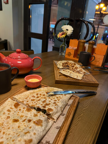 Атмосфера благодаря зубастым котикам очень необычная. Кошачья тема Васи Ложкина в каждой детали интерьера и сервировки. Вкусным и житным чебурекам есть альтернатива - янтыкъ. Тот же чебурек, но без обилия масла. Самый вкусный для нас с цыпленком и сливочным сыром. Персонал внимательный и дружелюбный.