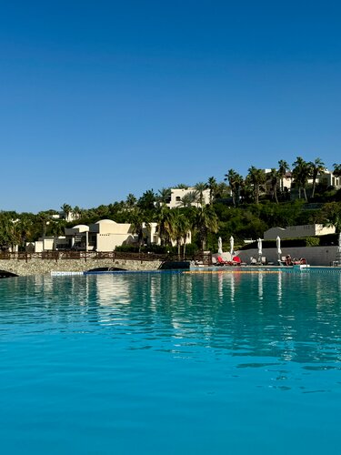 Мы отдыхали в The Cove Rotana Resort 5* с 28 декабря по 3 января и остались очень довольны. Однозначно рекомендуем этот отель тем, кто хочет отдохнуть от суеты большого города. Это замечательное, уютное место с высоким уровнем сервиса и вкусной кухней, куда хочется вернуться. Территория гостиничного комплекса: Особенность отеля — огромная, очень зеленая территория с живописным ландшафтом. Создается ощущение, что находишься в уютном старом городке: светлые домики, узкие улочки, дорожки, вымощенные камнем, красивые пальмы и ухоженные цветочные клумбы. Отель состоит в основном из отдельно стоящих вилл и двухэтажных коттеджей (по 4 номера в каждом). Есть также корпус «Room Pool View», который расположен чуть в стороне, со своим детским бассейном и водными горками. Небольшой минус этого корпуса — близость к большой трассе, из-за которой может быть слышен фоновый шум. По территории можно свободно передвигаться пешком или на гольф-карах (их здесь называют «баги»), которые оперативно развозят гостей по «месту назначения». Пляж и море: Пляж отеля великолепный: чистый, ухоженный, с большой собственной береговой линией. Даже при полной загрузке отеля (как это было после 2 января) свободные места находились для всех. На пляже регулярно проводятся активности: йога, пилатес, дартс, волейбол. Удалось посетить занятие йогой — инструктор был настоящим профессионалом, а практиковать дыхательные практики на берегу моря — отдельное удовольствие! Стоит учесть, что море в конце декабря прохладное. Спасают подогреваемые бассейны, которых на территории несколько. Отдельный взрослый бассейн впечатлил — вода в нем на ощупь была почти как морская. Питание: С питанием в отеле всё отлично! Завтраки, обеды и ужины предлагают большой и разнообразный выбор. Каждый день — множество мясных блюд, несколько видов рыбы, морепродукты, а также кухни разных стран мира (ливанская, индийская, арабская и др.). Всегда в изобилии свежие фрукты, нарезанный арбуз, вкуснейшие десерты и мороженое. Особенно понравился свежий хумус, маслины и оливки. Периодически проходят тематические ужины с приготовлением блюд на глазах у гостей. Если проголодались между приемами пищи, можно перекусить в кафе на пляже, у бассейна (взять сэндвичи и салаты ) -голодными вы не останетесь. Новогодний праздник: Встречали Новый год прямо в отеле. Праздничный ужин (стоимостью около 36 тысяч рублей на двоих) превзошел все ожидания! Это был пир в самом прямом смысле: устрицы, крабы, тигровые креветки, суши-бар, множество блюд на гриле и вертеле. Десерты поражали изыском, включая торты, украшенные сусальным золотом, и мороженое Mövenpick в неограниченном количестве. Шампанское было отменного качества (даже голова наутро не болела — верный признак!). Развлекательная программа также была хороша: кавер-группа, танцы живота, крутое фаер-шоу и даже дискотека в ретро-стиле. Было очень весело и по-семейному уютно. Большое спасибо за этот праздник персоналу и руководству отеля! Так же хочу отметить, что банкет был человек на 400-500. И в Москве за такую сумму вас точно так вкусно и «бездонно» ни одно заведение не накормит…. Сервис: Персонал отеля очень дружелюбный, отзывчивый и всегда старается помочь. Меня удивило, что уборкой номеров занимаются исключительно мужчины — номер буквально сиял каждый день, полотенца меняли регулярно. На ресе
