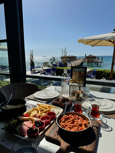 Персонал отличный. Вид шикарный. Еда вкусная. Цены +- как и везде. Турецкий завтрак от 650 до 1200 лир за человека. Коктейли +- все в одну цену 400-500 лир. Актуально на сентябрь-октябрь 2025 года